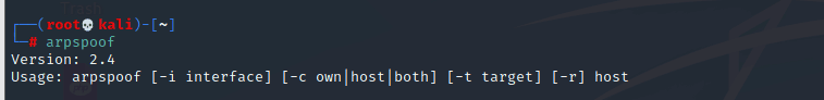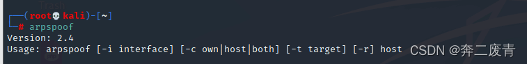 arpspoof -i (指定使用的网卡) -t(要欺骗的目标主机ip地址) (要伪装成的主机网关)