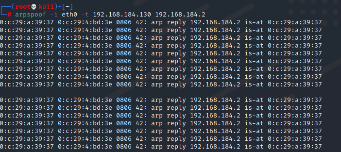 例:arpspoof -i eth0 -t 192.168.184.130 192.168.184.2