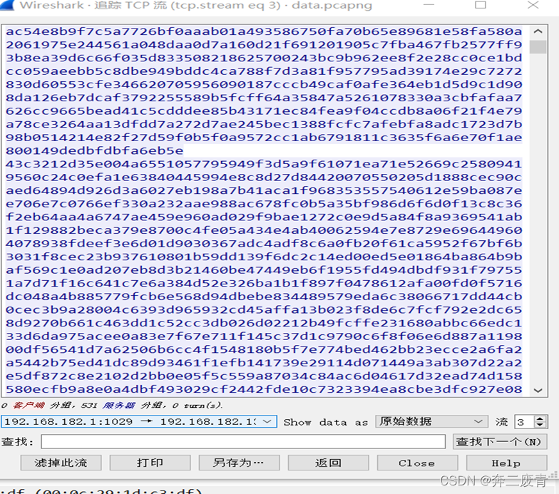 3. FTP数据还原部分:利用WireShark打开实验实验数据data.pcapng。