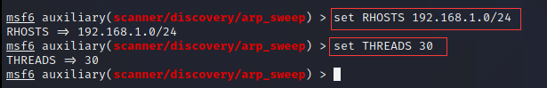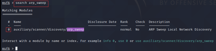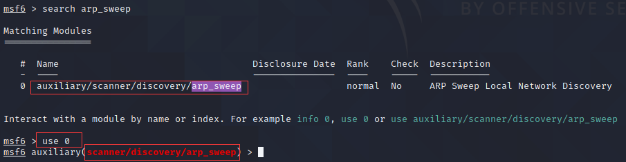 use 0 或 use auxiliary/scanner/discovery/arp_sweep