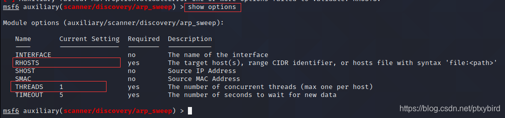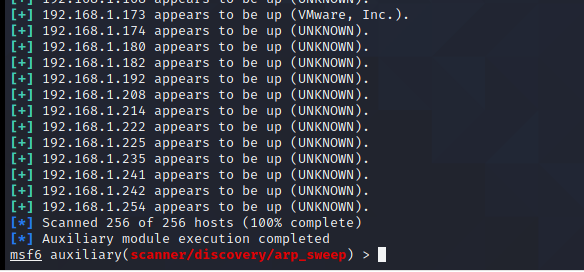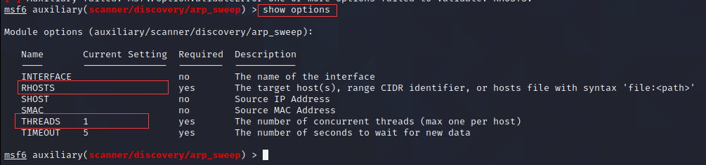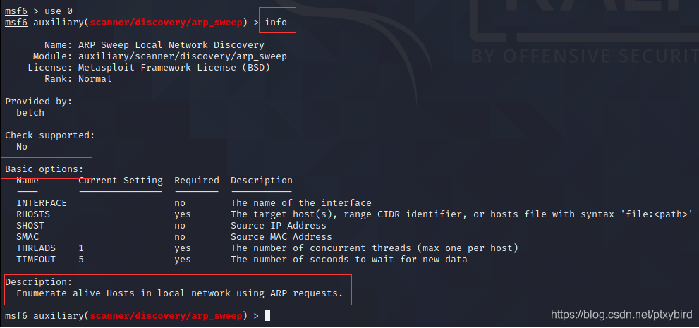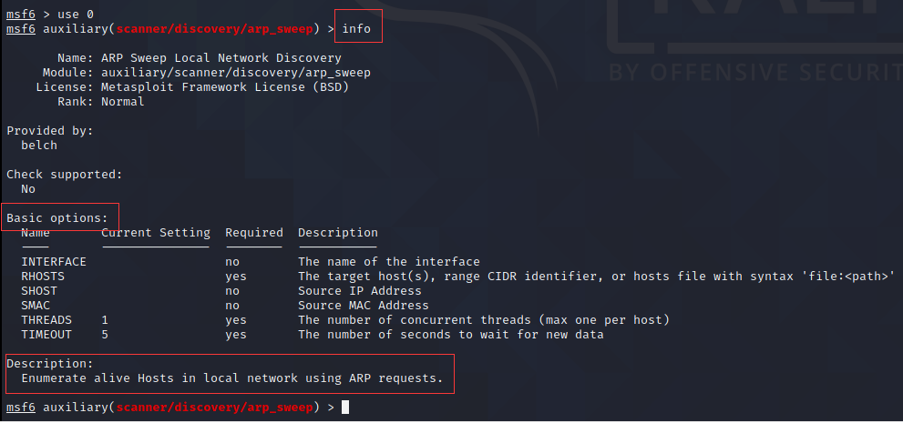 info 或 info auxiliary/scanner/discovery/arp_sweep