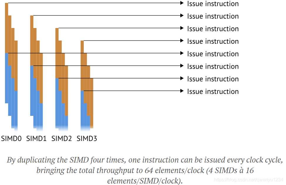 - Each SIMD unit executes one instruction across many items.