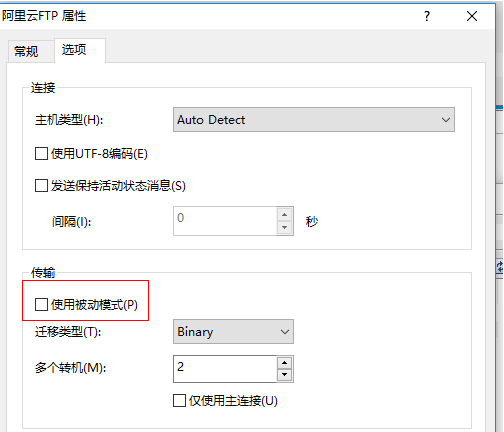 问题原因:由于ftp连接模式port模式和pasv模式。设置ftp 链接模式为port (主动模式) ,ftp客户端一般默认使用的pasv (被动模式) 。如果不修改模式,用户链接服务器后,目录一直不能显示。所以要修改为主动模式。
