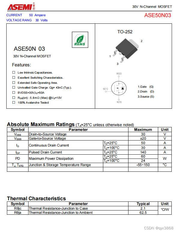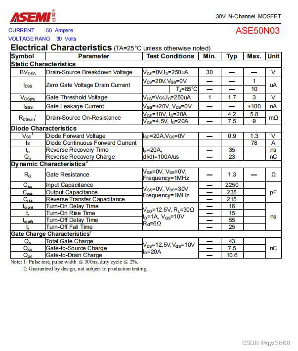 ASEMI低压MOS管ASE50N03参数,ASE50N03封装