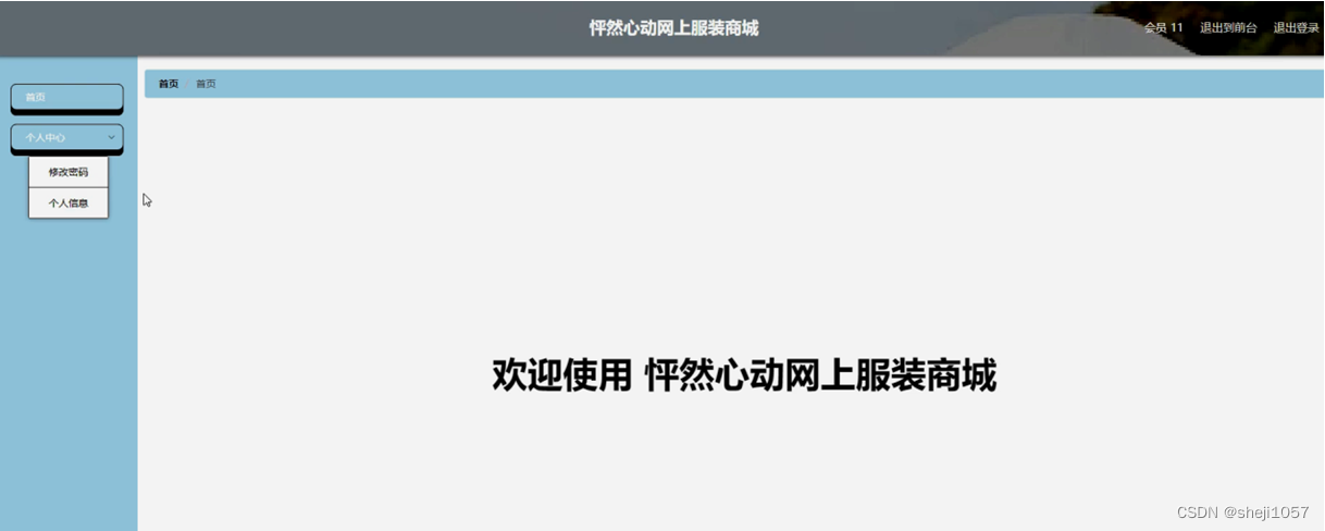 会员登录进入怦然心动网上服装商城后台可以对首页,个人中心等功能进行相应操作,如图5-13所示。