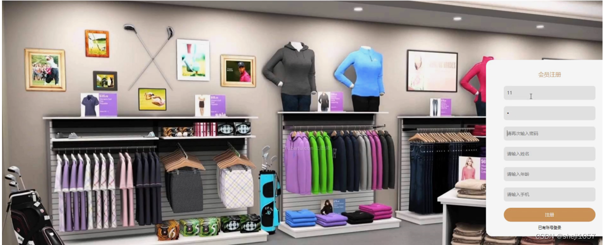 会员注册,在会员注册页面通过填写账号,密码,确认密码,姓名,年龄,手机等信息完成注册操作,如图5-2所示。