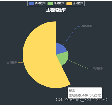 从图中可以发现,主场优势是真实存在的,当作为主场方的,其胜率达到了76.19%,而客场的胜率只有23.81%,平局和客队胜概率都较小。需要明确的是,在世界杯比赛中,没有正式的主客场之分。在小组赛中,每个球队都有机会分别在中立场进行3次比赛;而在淘汰赛阶段,除了决赛以外,主客场的优劣势对这些比赛并没有明显的影响。