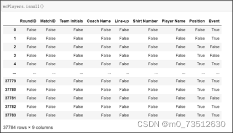 用isnull()查看缺失值,,返回True表示此处为缺失值,本数据集有缺失值,需要处理