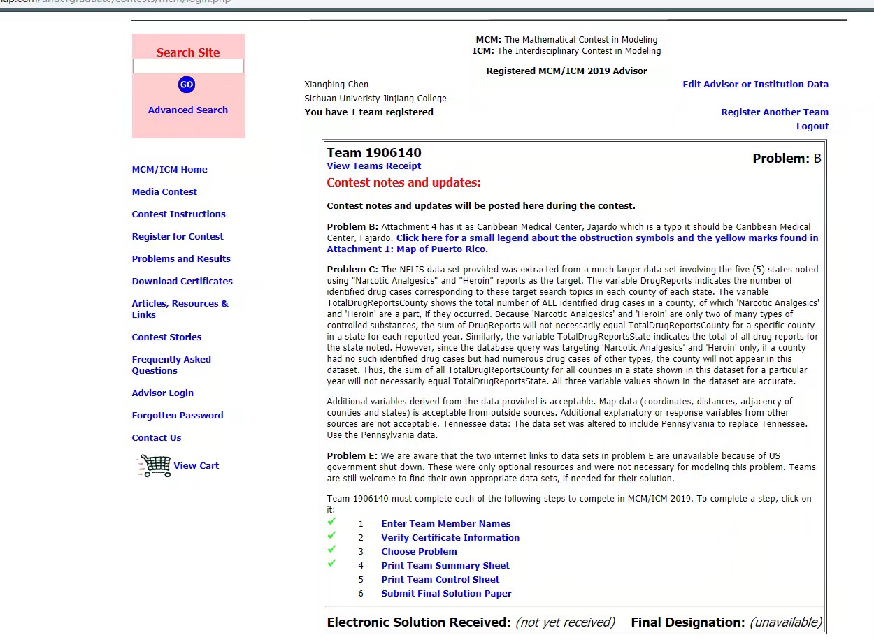 进入2019年,我首先参加的应该是美国大学生数学建模竞赛,比赛前前后后经过了十几天。这一次比赛应该是我经历过最辛苦的一次,首先经过了培训和模拟赛,接着就进行美赛,最后一天通宵,我站着脚都在发抖,回去后作息也乱了。不过也很开心,因为学校宿食好,能够和朋友们一起经历也是最暖心的,骚哥,拐哥,邓总,王总,刘师姐,王师姐... ...