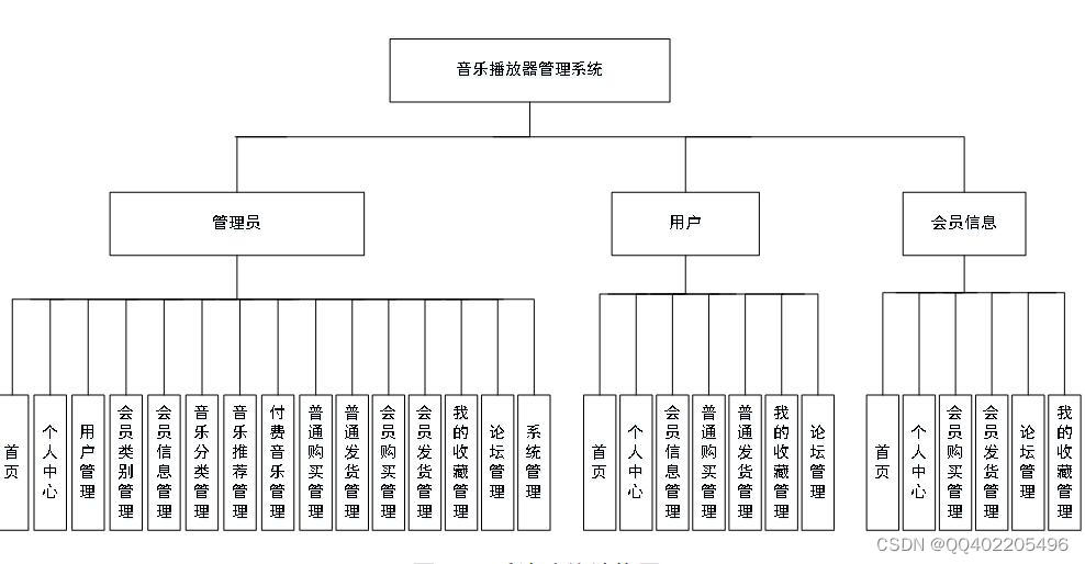 其主要功能包括管理员:用户管理、会员类别管理、会员信息管理、音乐分类管理、音乐推荐管理、付费音乐管理、普通购买管理、普通发货管理、会员购买管理、会员发货管理、我的收藏管理、论坛管理、系统管理,前台首页;首页、音乐推荐、付费音乐、论坛信息、个人中心、后台管理,用户:会员信息管理、普通购买管理、普通发货管理、我的收藏管理、论坛管理,会员信息;会员购买管理、会员发货管理、论坛管理、我的收藏管理等功能。