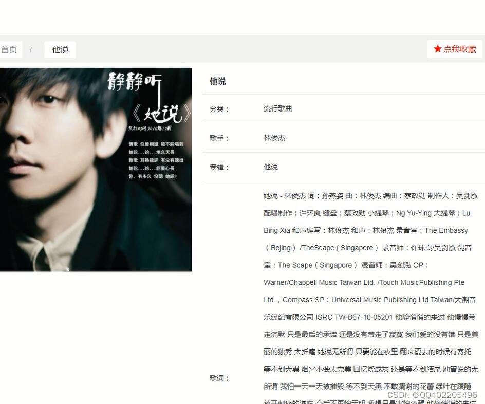 音乐推荐,在音乐推荐页面中可以查看分类、歌手、专辑等信息进行点我收藏