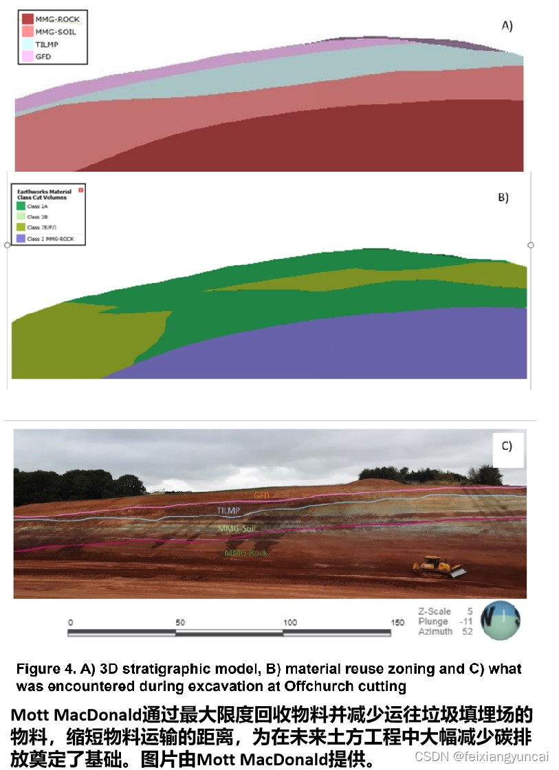 Mott MacDonald 岩土工程数据和三维地面建模专家 Peter Fair 表示:“通过对特定区域进行有针对性的挖掘,获取建造时符合类别要求的填方,施工团队可以优化永久性工程期间的大规模运输活动。”