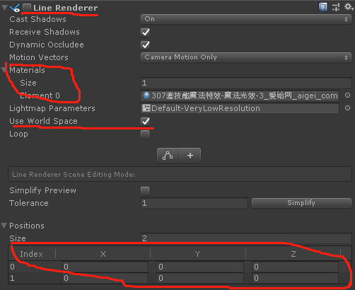 1.去掉linerenderer的对勾,禁用linerenderer,因为我们要通过脚本控制