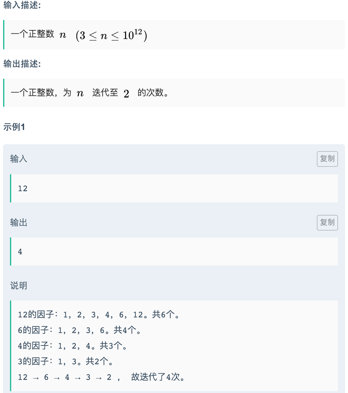 #include long long func(long long num){long long cnt = 0;long i=1;for(i=1;i < (long)sqrt(num)+1;i++){if(num%i==0){cnt = cnt+2;}}if(i-1 == sqrt(num)){cnt -= 1;}return cnt;