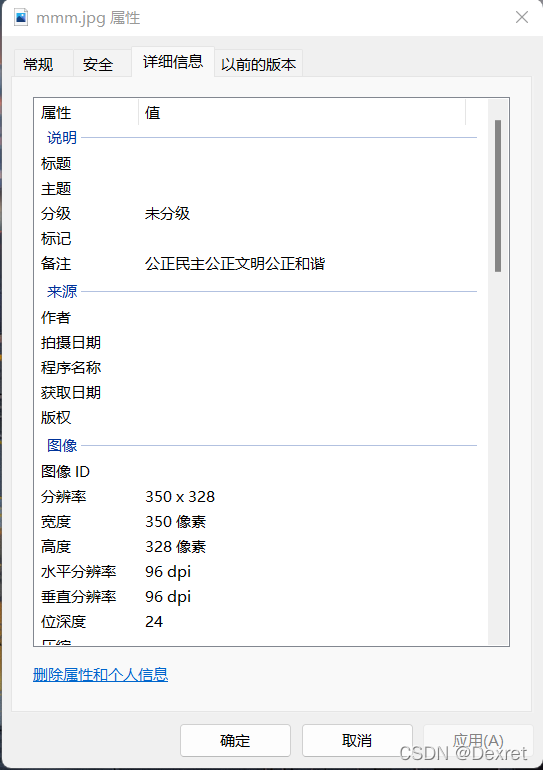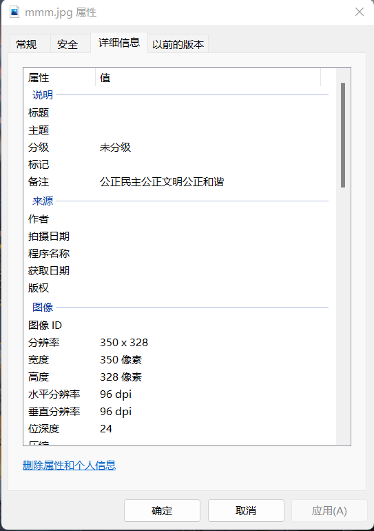 查看该图片的exif信息,发现备注有一段社会主义核心价值观