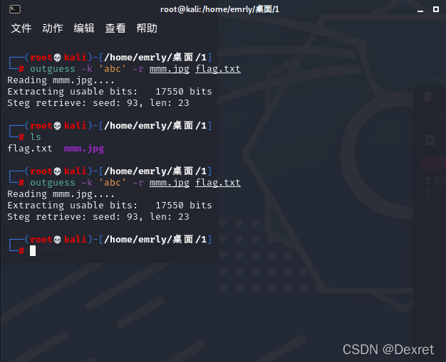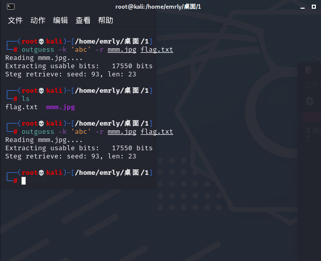 outguess -k 'abc' -r mmm.jpg flag.txt
