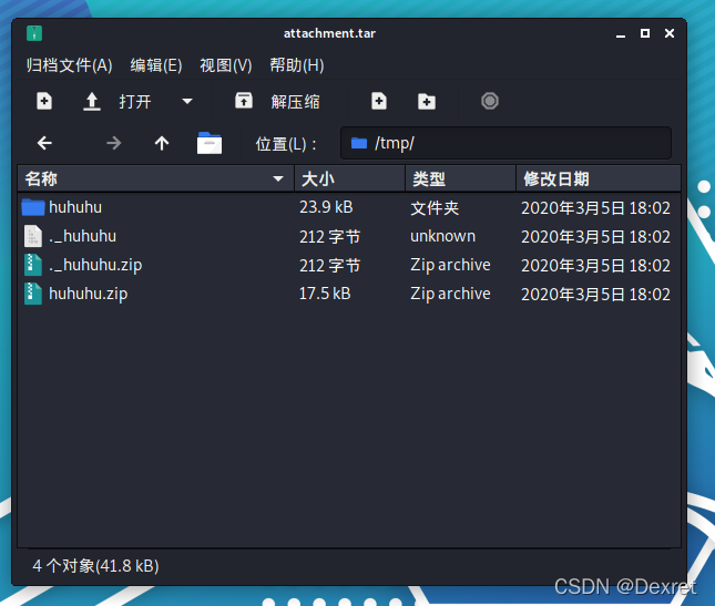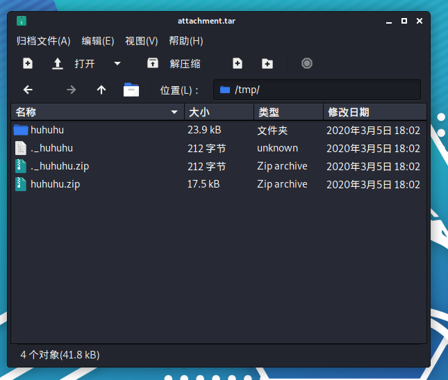 下载该文件,发现为一个tar文件(tar文件常用linux系统上的压缩文件),将该文件传至kail