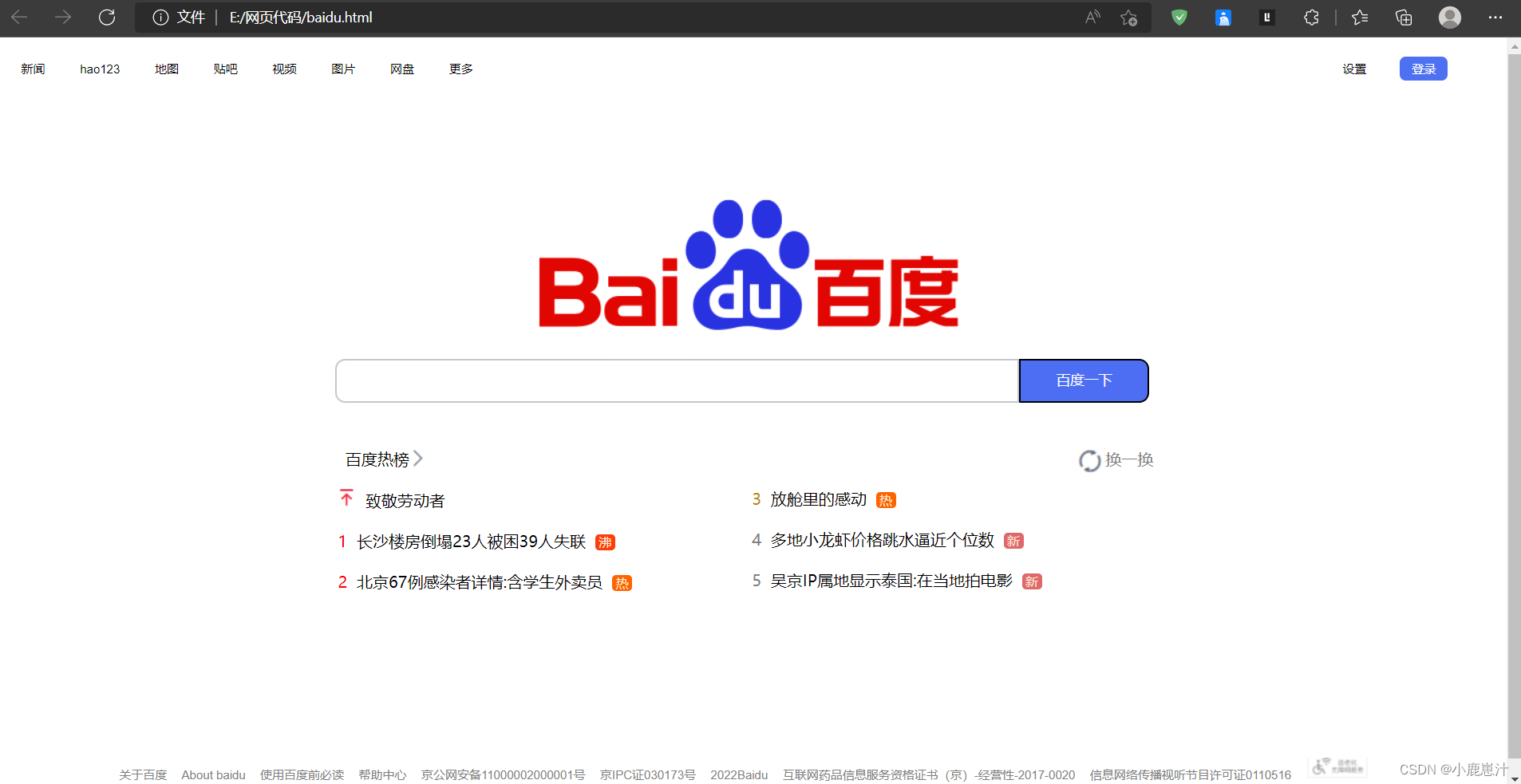 仿作百度页面,先用HTML将百度页面的基本框架搭建好,然后在css中展开布局。