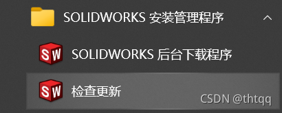 点击我们电脑左下角的开始键,找到 “SOLIDWORKS安装管理程序”点击“检查更新”