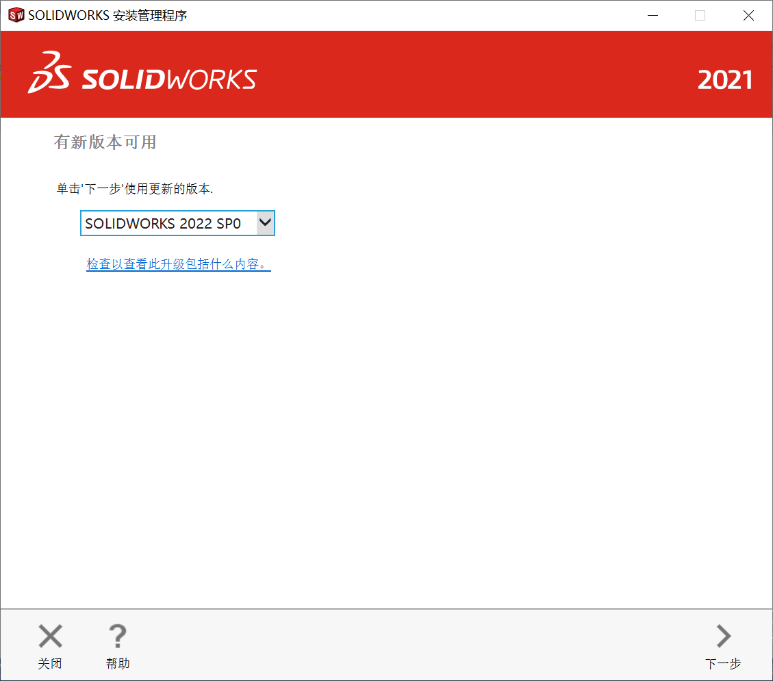 此时系统会检查最新版本的SOLIDWORKS,这时我们可以选择安装最新版本的SOLIDWORKS完成我们版本的更新