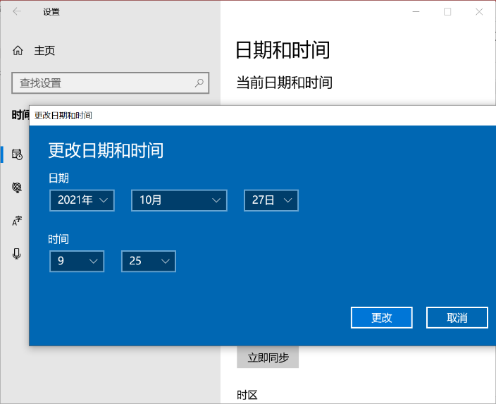 我们在电脑的右下角找到我们的时间,右键单击时间显示区域,选择“调整时间”选项关闭“自动设置时间”、“自动设置时区” “在手动设置时间”下点击更改将时间调整至10月25号至10月28号之间即可。如下图: