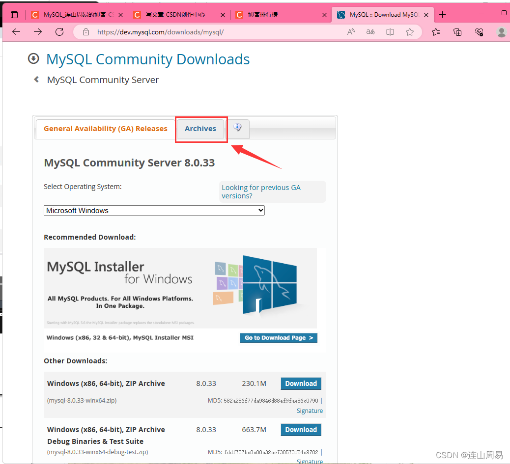 利用官方网址获取数据库软件程序:https://www.mysql.com/