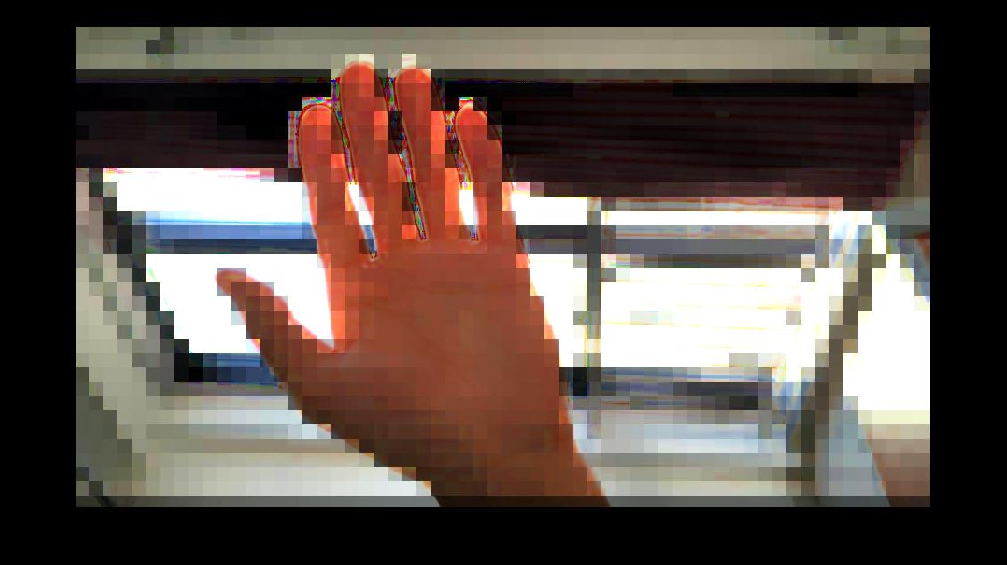 (2)将图像分为16×16、8×8大小的图像块时,图像的亮度较原图像有较大改善,已经可以看清图像的中心区域手掌的掌纹等细节部分,但是图像非主体区域的背景区域以及手指区域的失真依然很严重;
