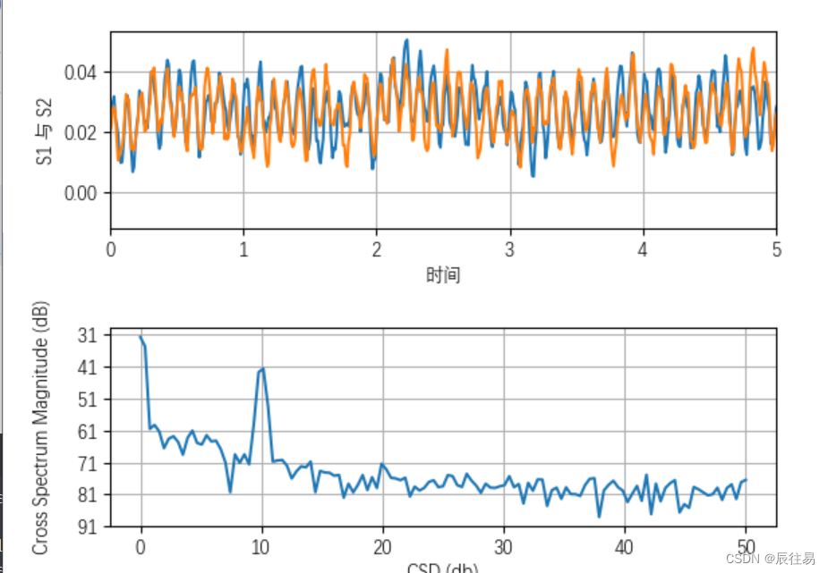 Matplotlib 是 Python 的绘图库。 它可与 NumPy 一起使用,提供了一种有效的 MatLab 开源替代方案。 它也可以和图形工具包一起使用,如 PyQt 和 wxPython。本文通过绘制简单的两个信号互谱密度(CSD)的演示,来学习绘制简单的图形。非专业人员,知识比较浅显,内容主要偏向编程,简单介绍在python中matplotlib库的应用实例。