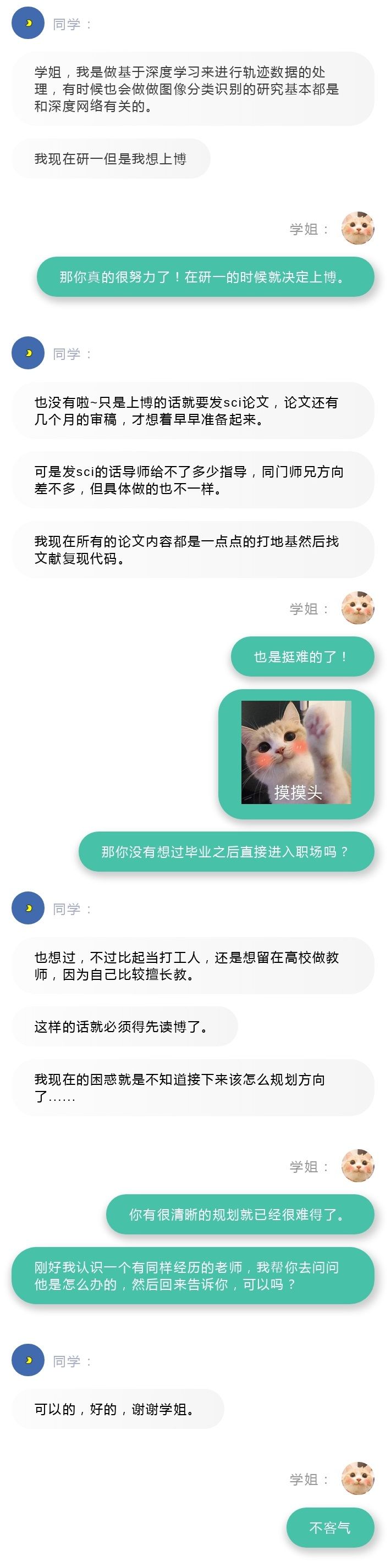 这次学姐实在是不好意思再去打扰小享了,不过刚好学姐认识一个同样经历的老师,就直接来打扰老师了