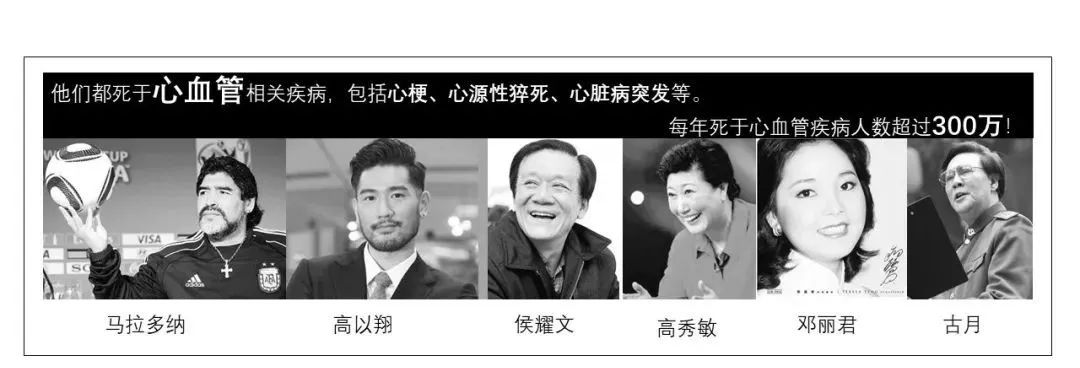 可是,除了马拉多纳之外,据不完全统计每年越有300万的人死于心血管相关疾病,其中不乏明星艺人各界大V,包括了高以翔、侯耀文等。