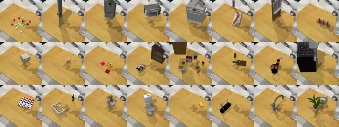 IKEA让机器人学习组装各种家具,仿真环境基于Mujoco和Unity渲染,包含80+家具模型和多种机械臂。