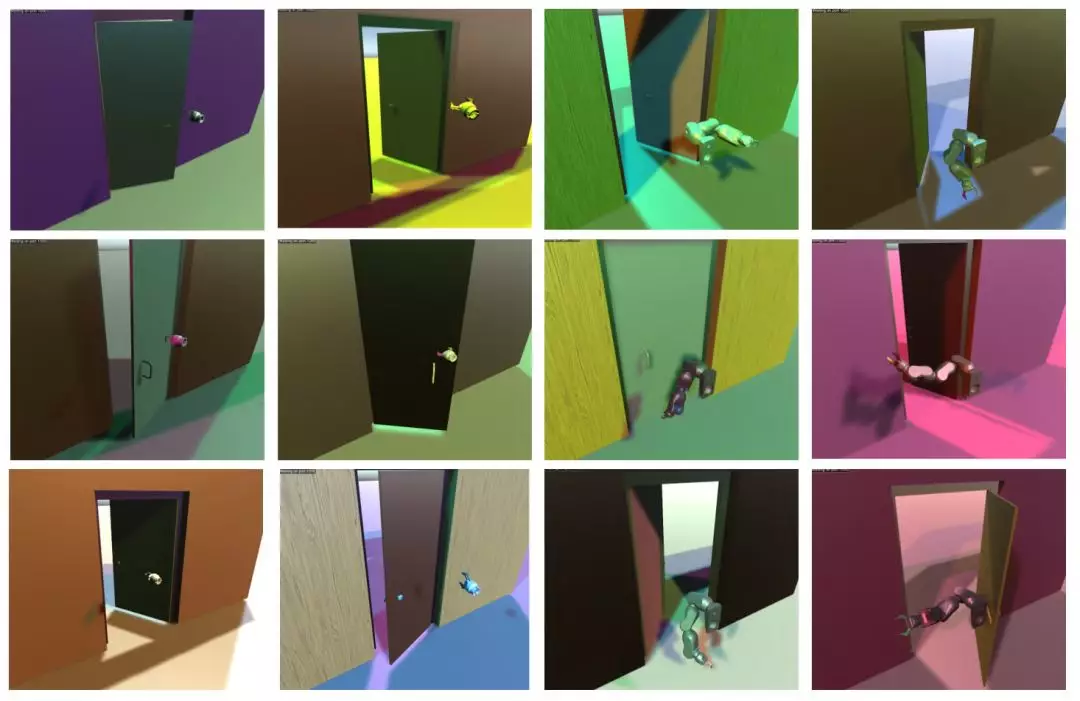 让机器人学习开门,也很有意思。DoorGym基于Mujoco和Unity仿真训练,并且在一个Baxter机器人进行实际测试。