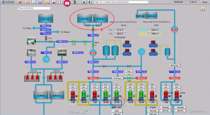 ● 某地供水压力管理特点:每个水泵组都有一个调频泵;每一个压力区都有一个高位水池做缓冲。
