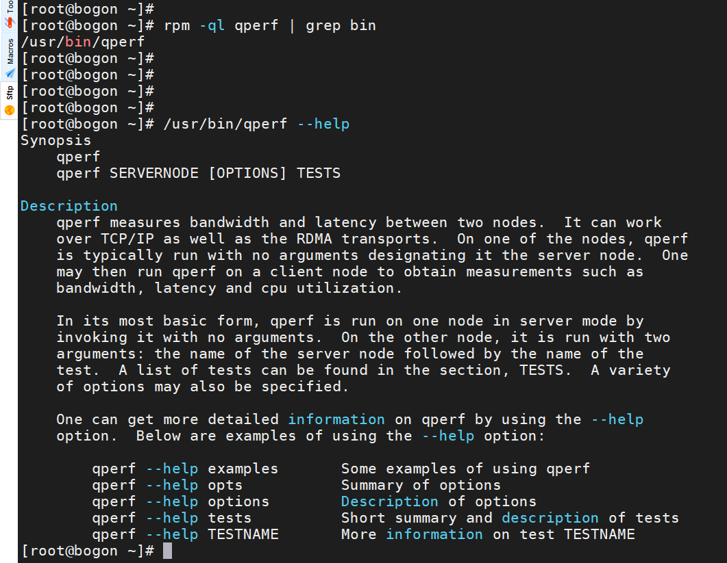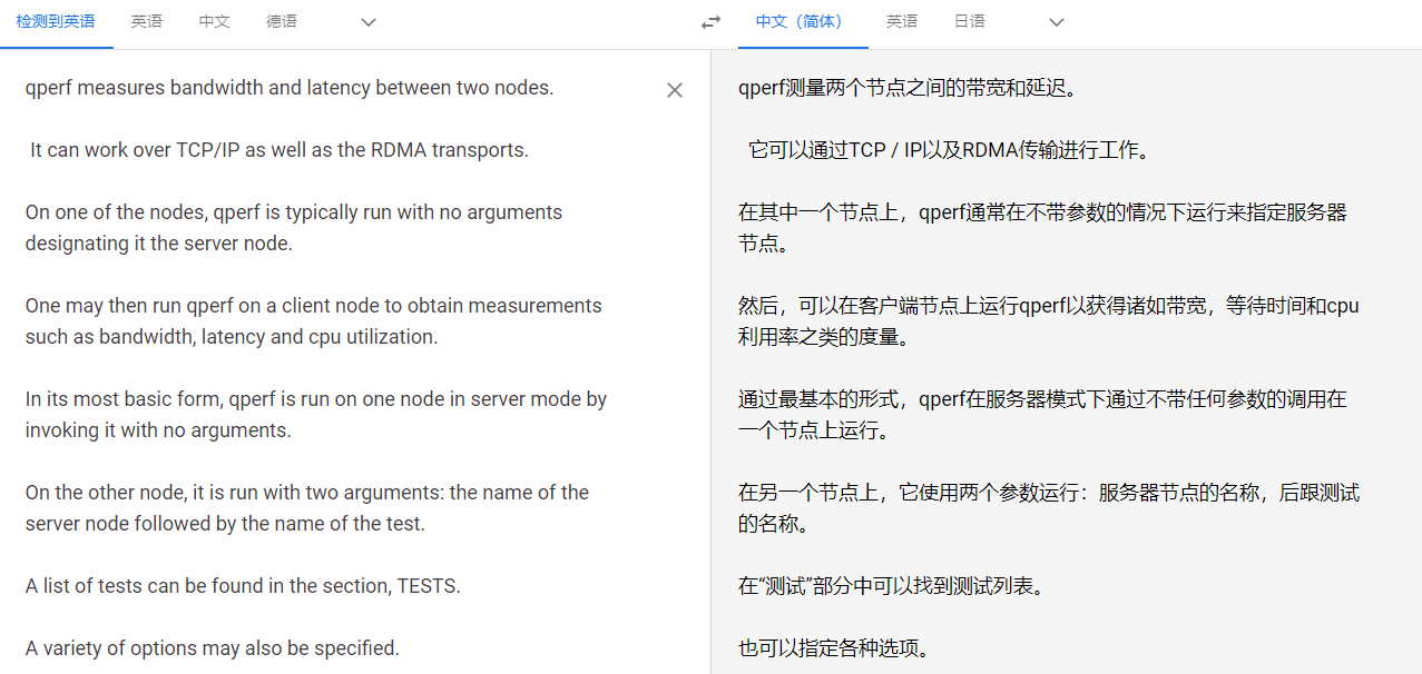 qperf 可以用来测试两个节点之间的带宽(bandwidth)和延迟(latency),不仅仅可以用来测试 TCP/IP 协议的性能指标,还可以用来测试 RDMA 传输的指标。