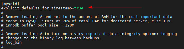 [Warning] TIMESTAMP with implicit DEFAULT value is deprecated. Please use --explicit_defaults_for_timestamp server option (see documentation for more details).