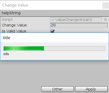 EditorUtility.DisplayProgressBar(string title, string info, float progress);
