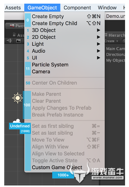https://unity3d.com/cn/learn/tutorials/topics/interface-essentials/unity-editor-extensions-menu-items
