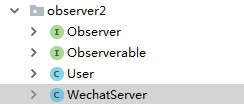 public class User implements Observer {private String name;private String message;public User(String name) {this.name = name;}@Overridepublic void update(String message) {this.message = message;read();}public void read() {System.out.println(name + " 收到推送消息: " + message);}}