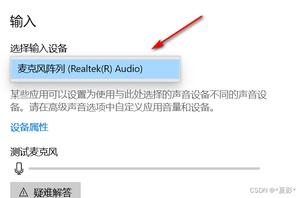 如果设置里面选不了耳机的麦克风,显示只有一个麦克风阵列。