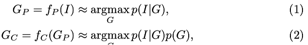 给定一个包含许多图像I∈[0, 1] h×w×c的训练数据集与真实场景图 GT 配对[李10] ,我们的目标是训练一个模型,该模型采用新图像并预测一个场景图最大化 p(G |I)。这相当于最大化 p(I | G)p(G),将问题分解为我们所说的感知和常识。在我们提出的直觉中,常识是人类预测哪些情况是可能的,哪些情况是不可能的,或者换句话说,判断感知是不是正确。这可以看作是在场景图中,世界上所有可能情况的先验分布 p(G)。另一方面,感知是从原始感官数据形成符号信念的能力,在我们的例子中分别是 G 和 I。尽管计算机视觉的目标是解决最大后验 (MAP) 问题(最大化 p(G | I)),但神经网络通常无法估计后验,除非在模型定义中明确强制执行先验 [17]。这是在计算机视觉中,先验经常被忽视,或者被错误地认为是均匀分布,使得MAP 等效于最大似然 (ML),i,e,即找到最大化 p(I | G) [20] 的 G。
