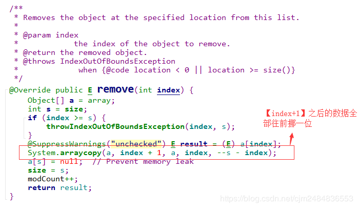 对应的代码就是System.arraycopy(a, index + 1, a, index, --s - index);这句代码,