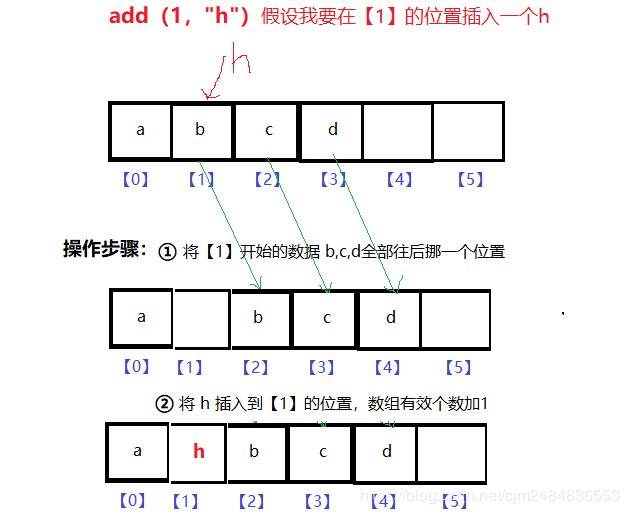 从要插入的位置开始的所有数据,都要往先后挪一位;然后再把要插入的数据放进去。画了个图,方便大家理解: