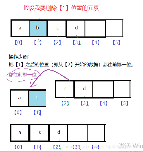 即 :如果要删除【index】位置的元素,那就要把【index】之后的所有元素都往前挪一位,覆盖掉index原本的位置。