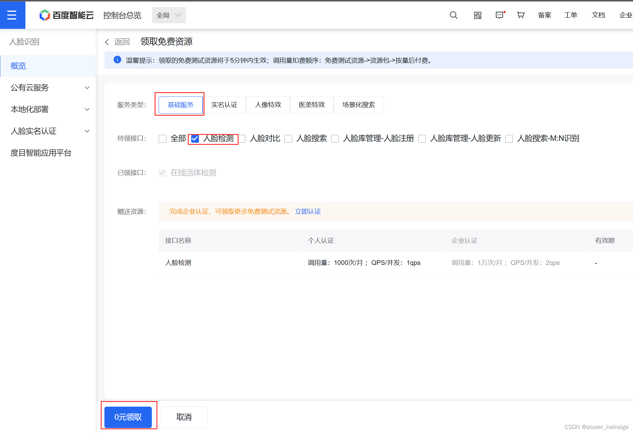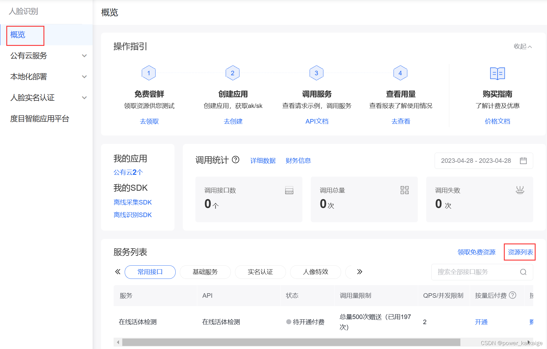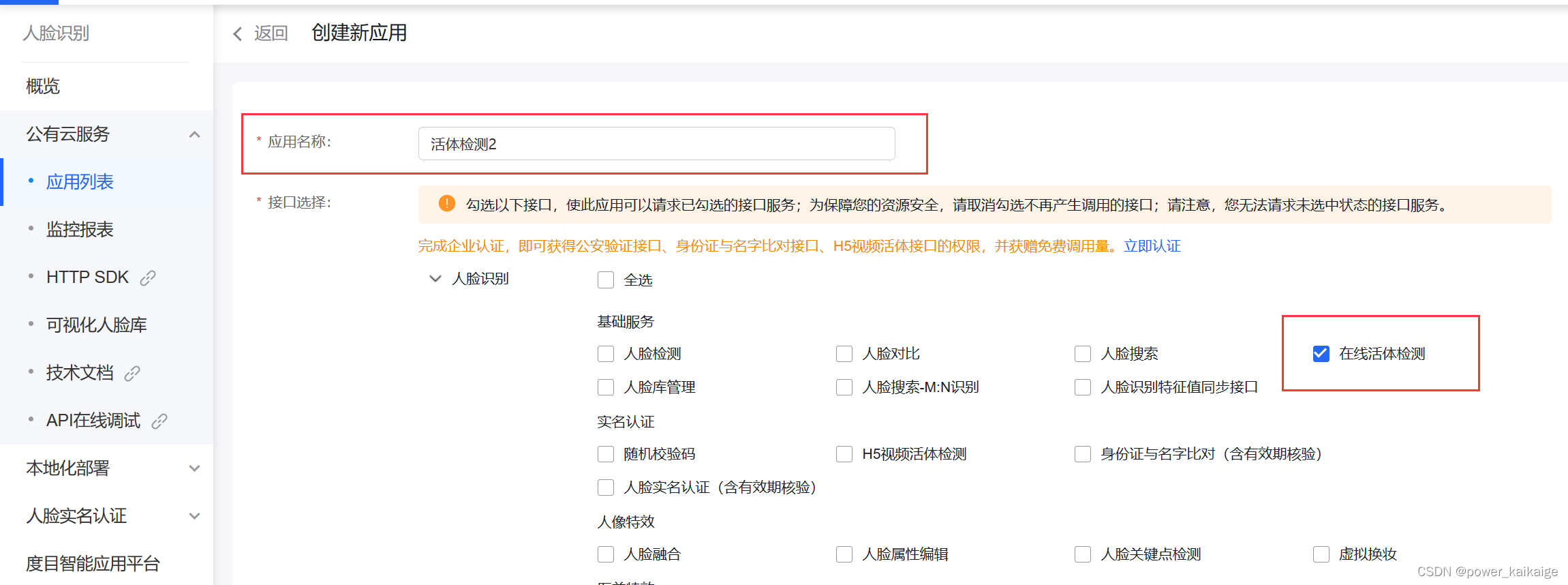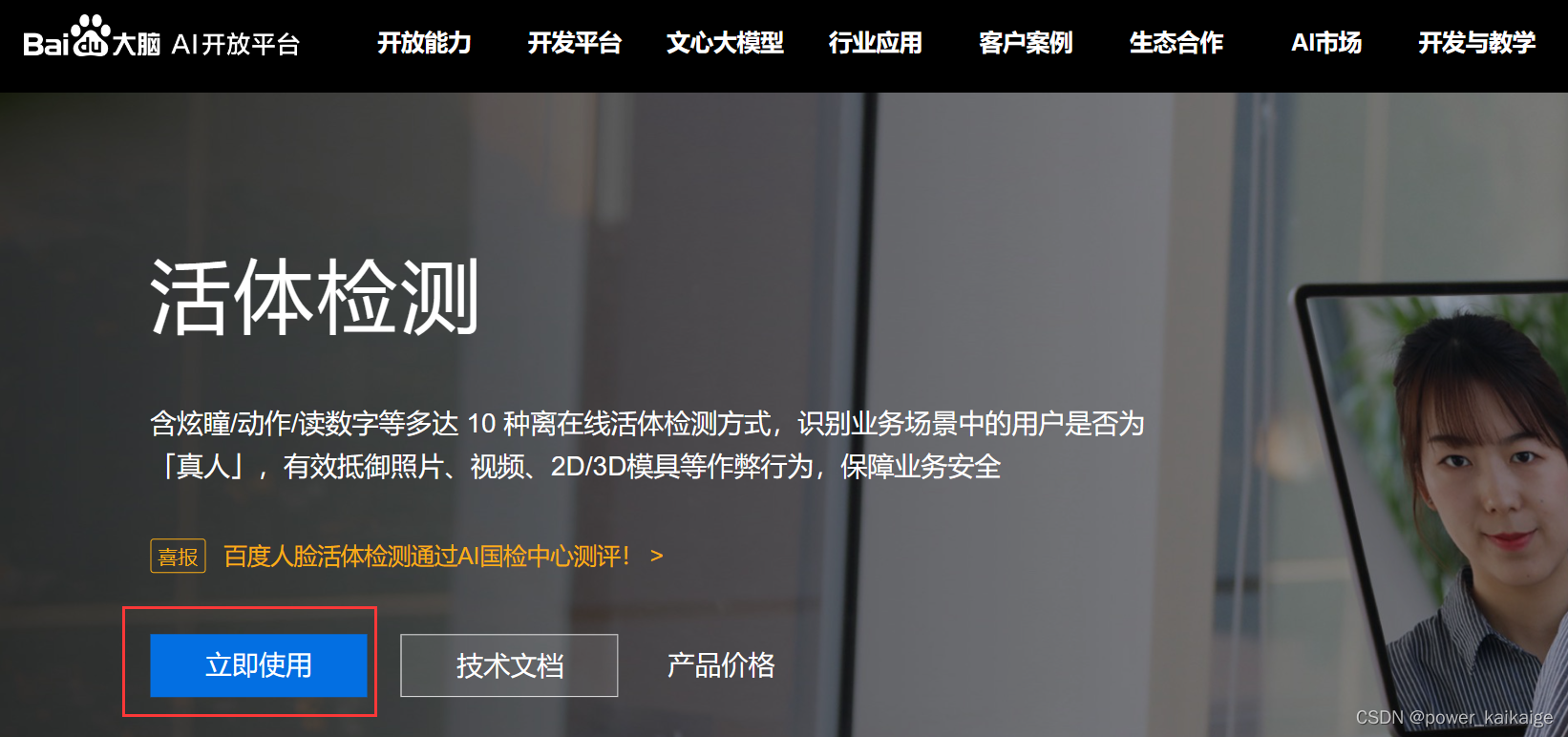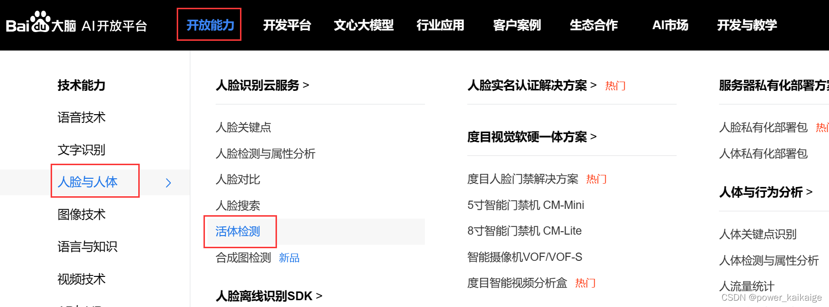 (2)找到活体检测入口:开放能力->人脸与人体->活体检测;