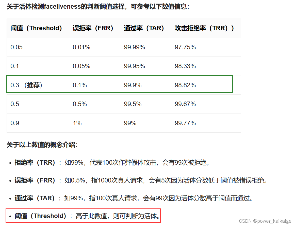 该API推荐的阈值信息:(预测分数高于设定的阈值,判定为真样本;否则,判定为假样本)