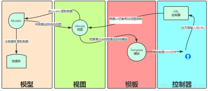 3.视图函数很具业务逻辑去Models中取数据,而Models则是在数据空中取数据