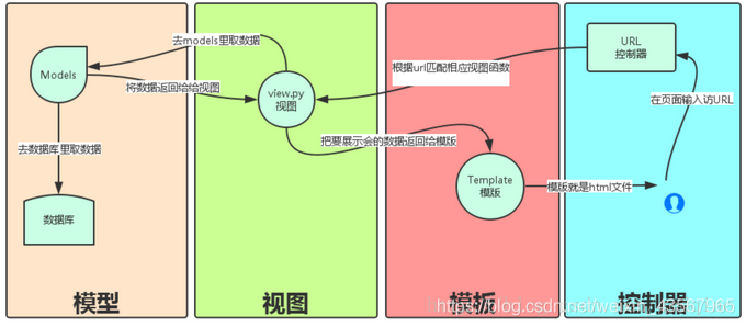 就是把Web应用分为:模型(Model),模板(Template),视图(View)这三层,这样一来,各组件之间就保持了松耦合关系;M主要是用来负责业务对象和数据库对象,T负责把页面如何展示给用户,V负责业务逻辑,并在适当的时候调用M和T。对于Django来说,还有一个url分发器,它的作用就是将一个个url的页面请求分发给不同的V处理,V再调用相应的M和T。