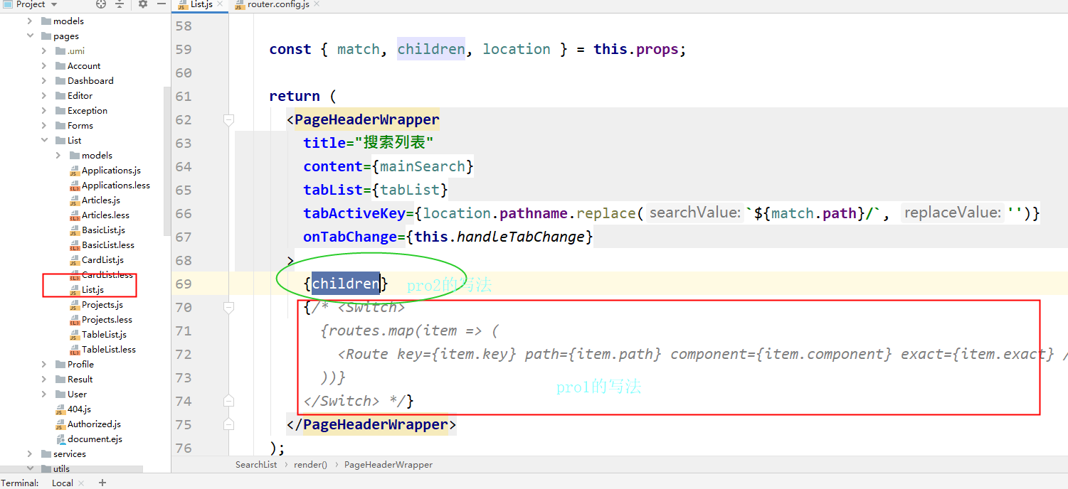 同事也在研究,发现Pro2版本同样的地方(List.js)中放弃了pro1版本的写法,而是直接使用children