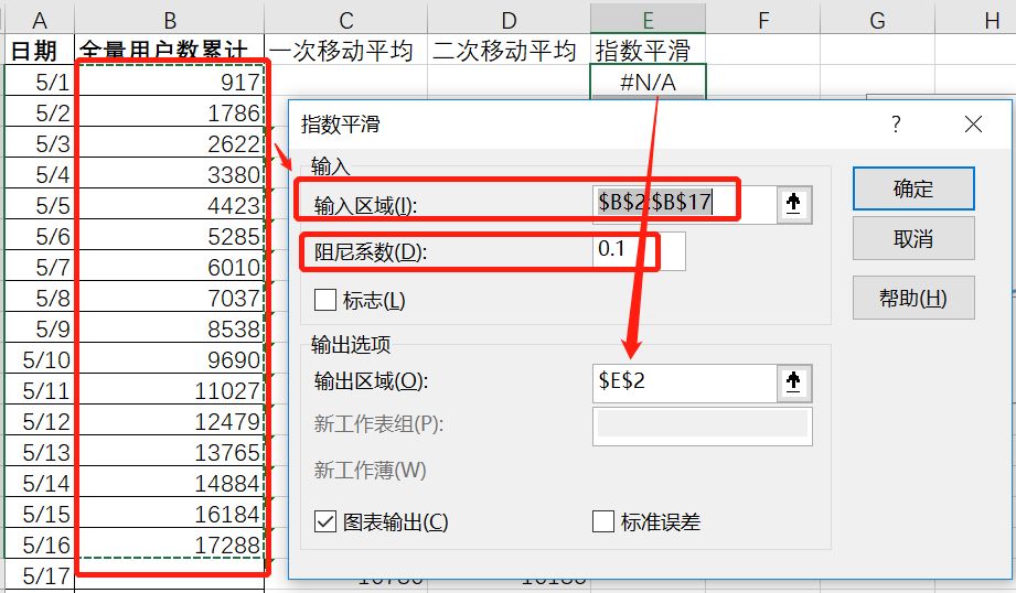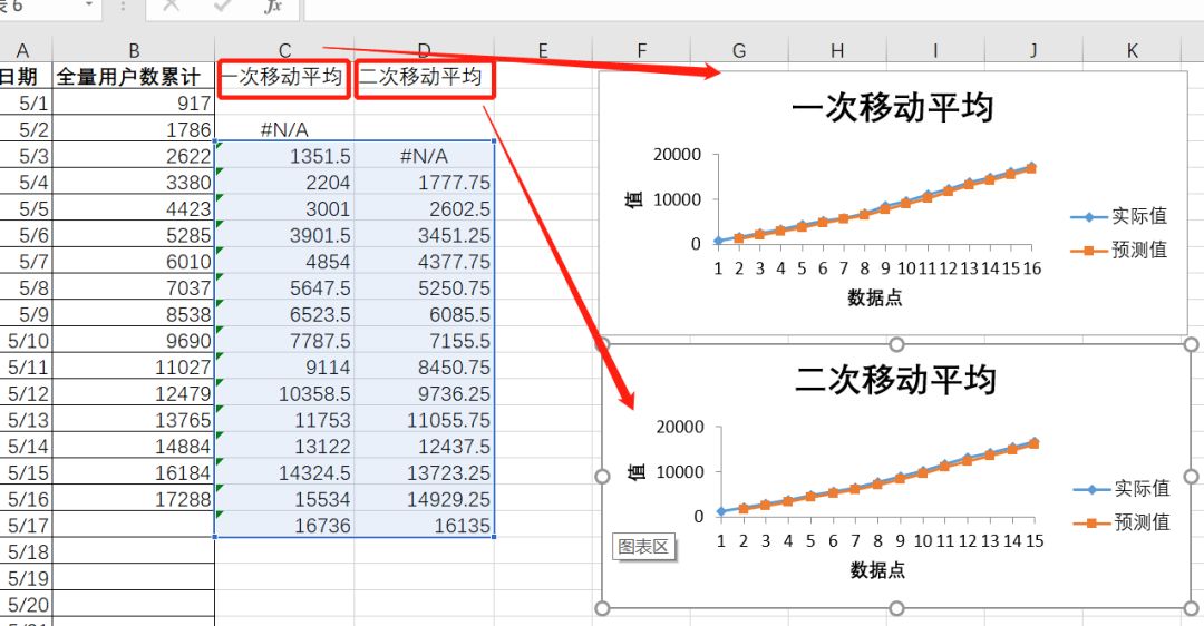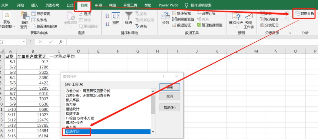 间隔:指定使用几组数据来得出平均值,即公式中的n,移动个数。