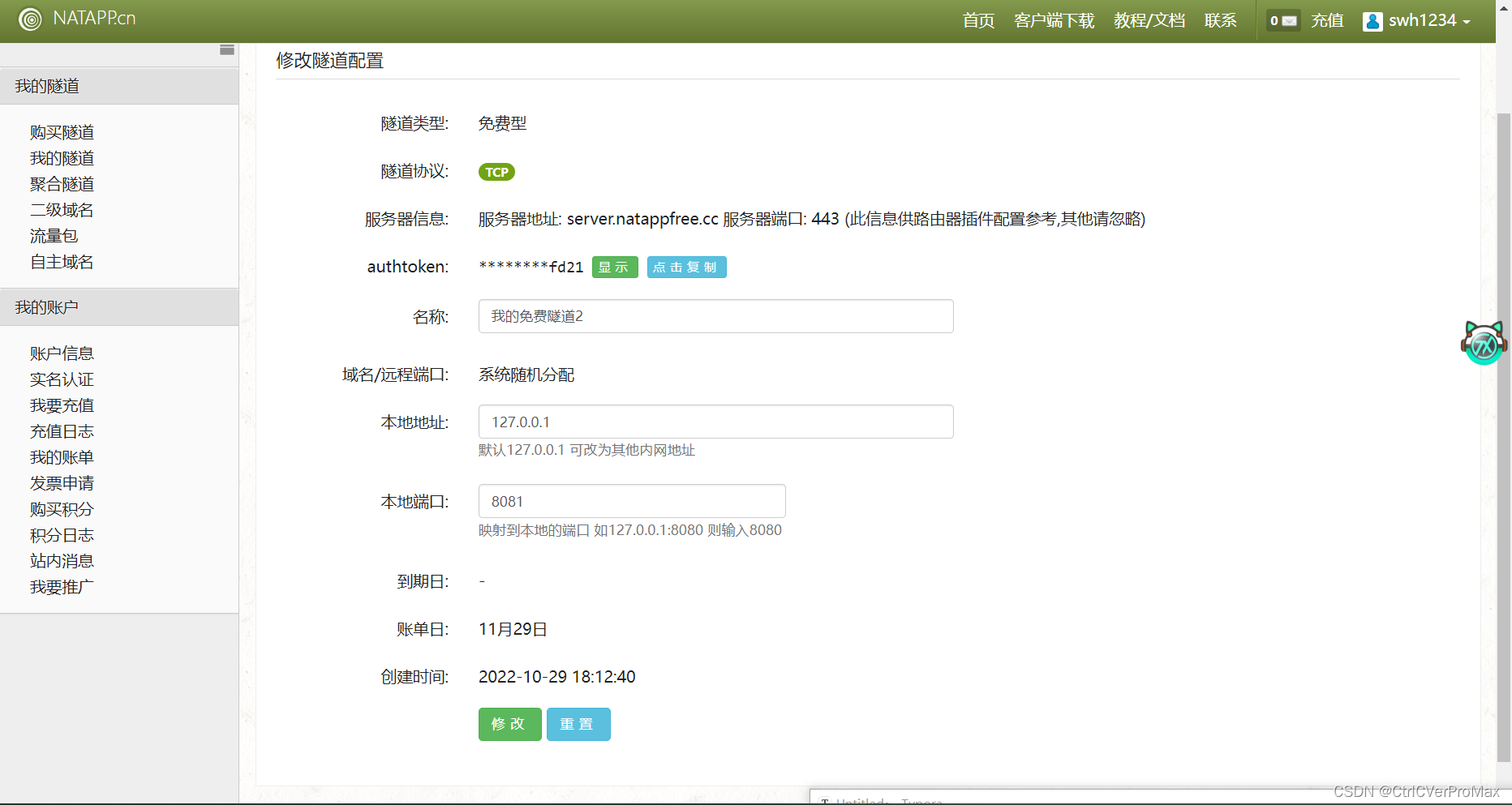 natapp能够免费注册两个authtoken,意味着只能内网穿透两个端口,能够满足一般的前后端分离项目。